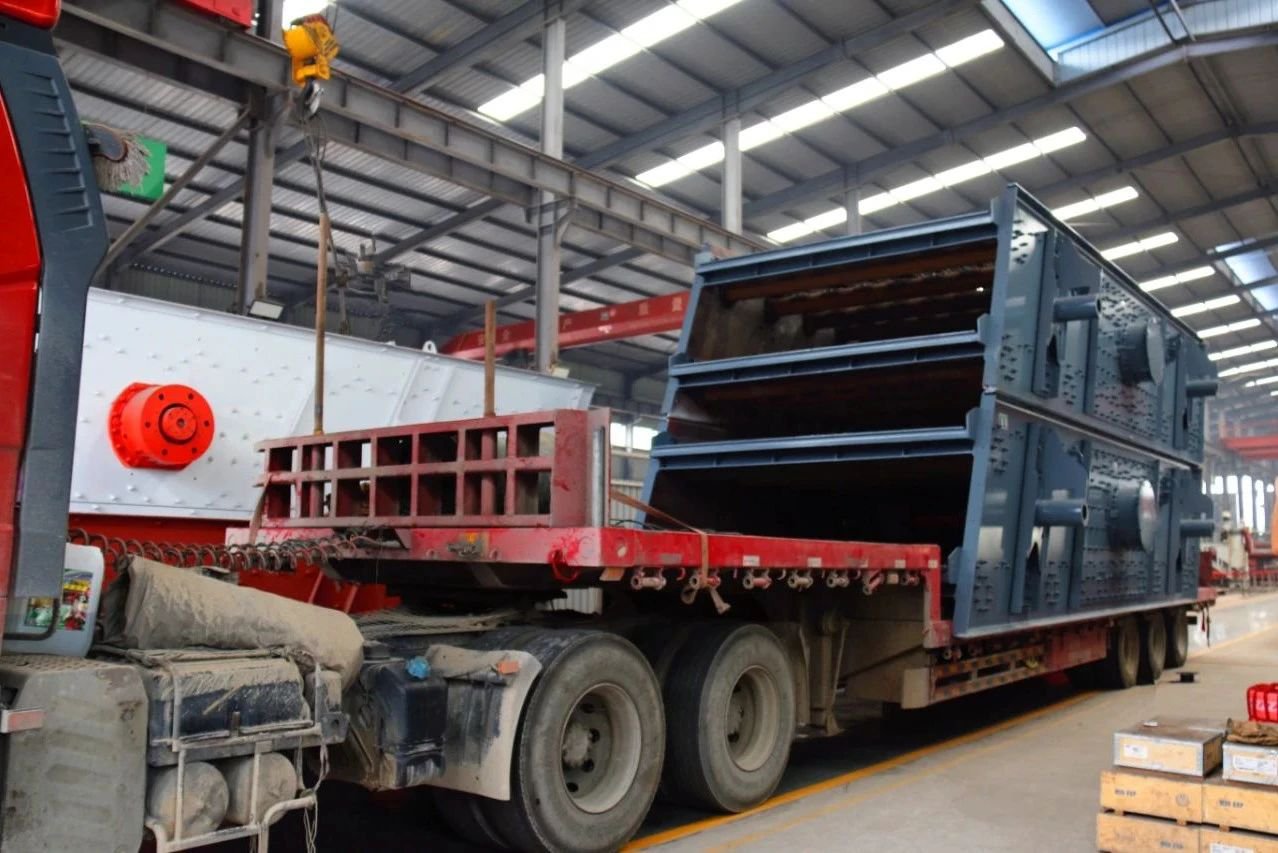 走進(jìn)鑫金山生產(chǎn)基地,一片繁忙而有序的景象映入眼簾。一輛輛貨車整齊排列,工人們正緊張而熟練地將各類設(shè)備吊運(yùn)裝車。從巨大的破碎機(jī)到精密的篩分設(shè)備,每一臺(tái)都承載著鑫金山對(duì)品質(zhì)的執(zhí)著追求和對(duì)客戶的鄭重承諾。