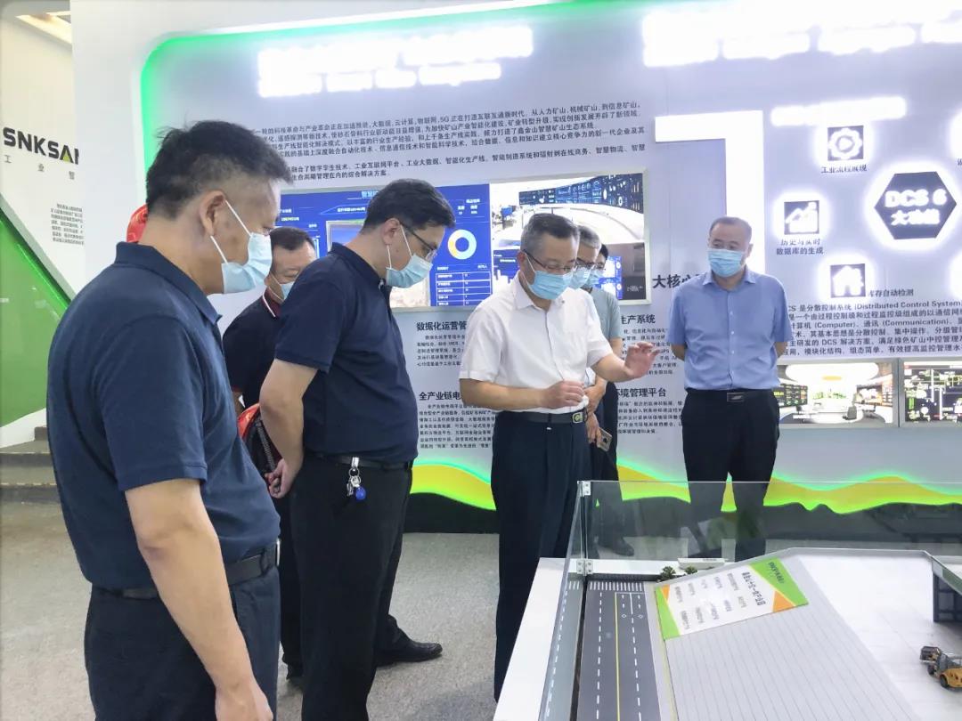 在鑫金山王副總的陪同下,彭書記一行來到公司智慧礦山科技研發(fā)中心,觀看公司宣傳片,參觀公司展示廳,詳細了解了鑫金山產(chǎn)業(yè)發(fā)展、應用領域以及技術研發(fā)成果等有關情況。